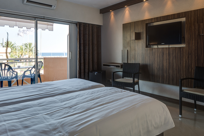This pleasant double room with a balcony has a beautiful view over the marina and the sea. The room with twin beds has a balcony, flat-screen TV, refrigerator, individual air-conditioning and wireless internet. The bathroom is equipped with a shower and toilet.